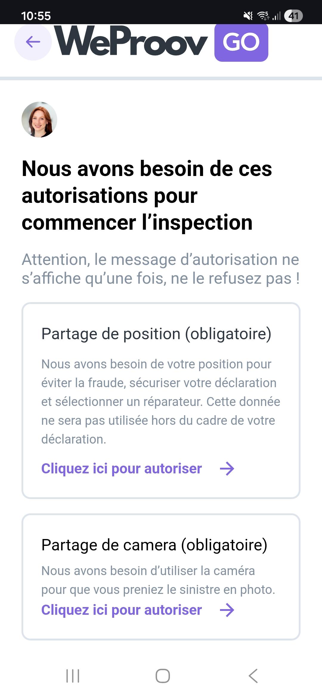 N'oubliez pas de nous donner accès la à géolocalisation et à l'appareil photo sur cette page :